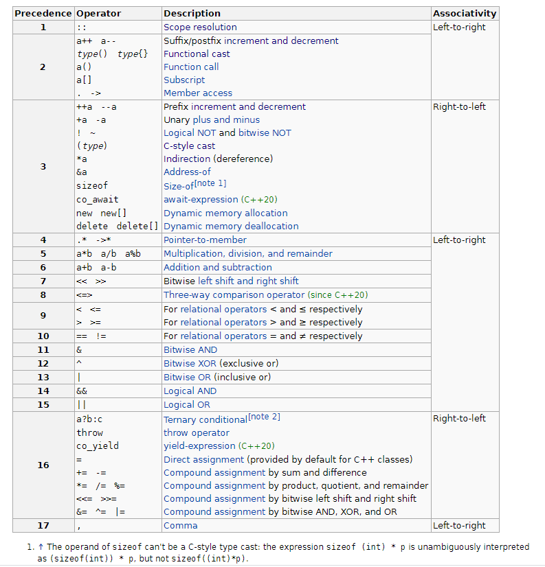 在cppreference C++ Operator Precedence中对此进行了说明: